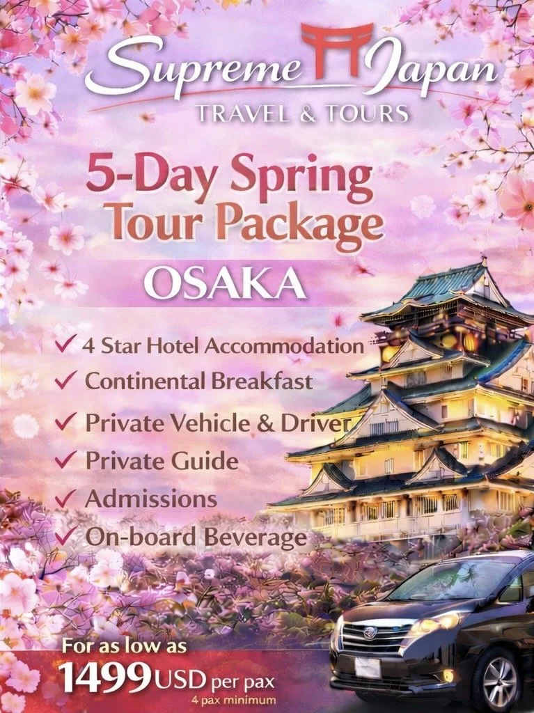 Spring Season 5-Day Tour Package (4-star • All-inclusive) Make It 5-Day Tokyo Tour Package (4-star • Breakfast only) Make It 5-Day Tokyo Tour Package (3-star • All-inclusive) Make It 5-Day Tokyo Tour Package (3-star • Breakfast only) Request This Package 5-Day Osaka Tour Package (4-star • All inclusive) Request This Package 5-Day Osaka Tour Package (4-star Click Here